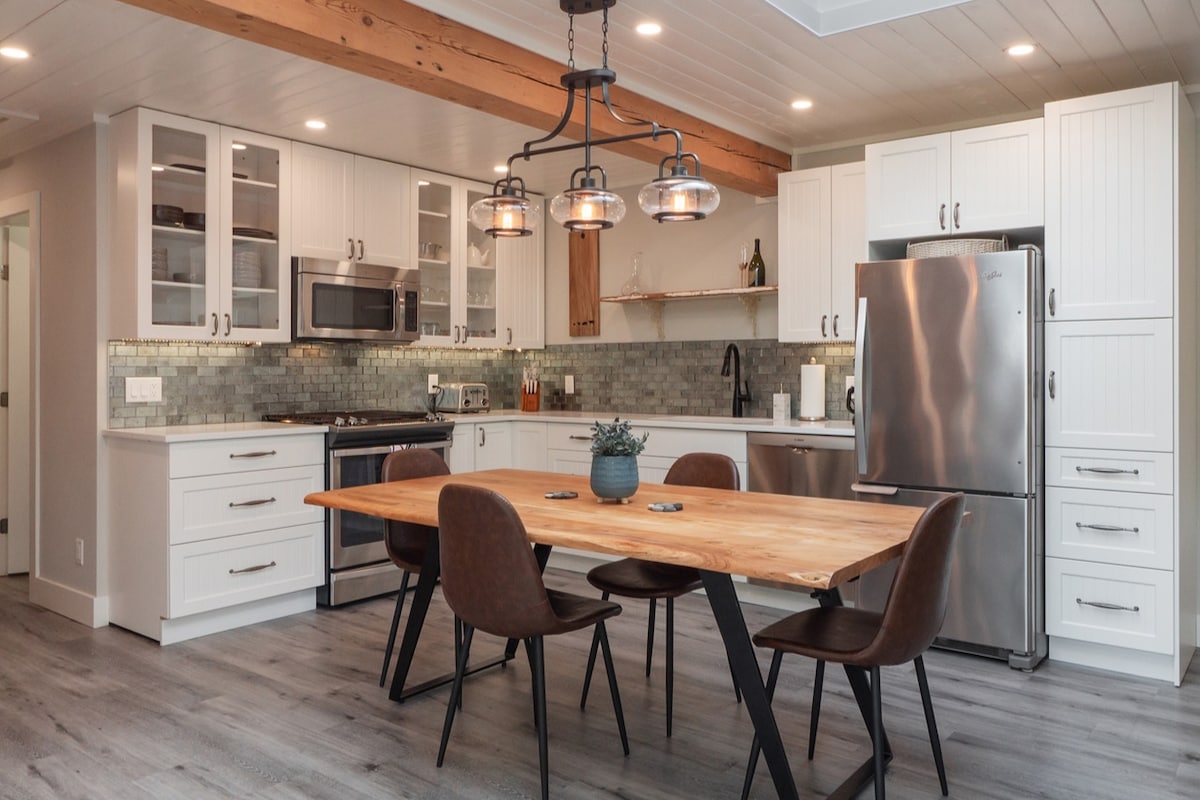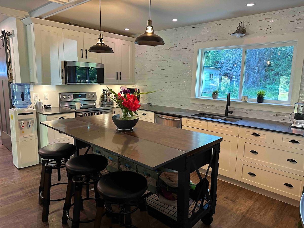 Helyezd magad kényelembe a kék bungalónkban! Ez a 2 hálószobás, 1 fürdőszobás, nyitott koncepciójú nyaraló Port Angeles belvárosában található! Legfeljebb 6 ember alszik egy királynővel, egy király, egy nagy kanapé (nem kihúzható) és új felfújható ágy áll rendelkezésre! Ez a stílusos, 1015 négyzetméteres otthon 2021-ben épült, és vadonatúj készülékekkel és bútorokkal van berendezve! Közel az Olimpiai Nemzeti Parkhoz, a National BMX Trackhez, a Sprint Boat Trackhez (ESP pálya) és a Crescent-tóhoz!