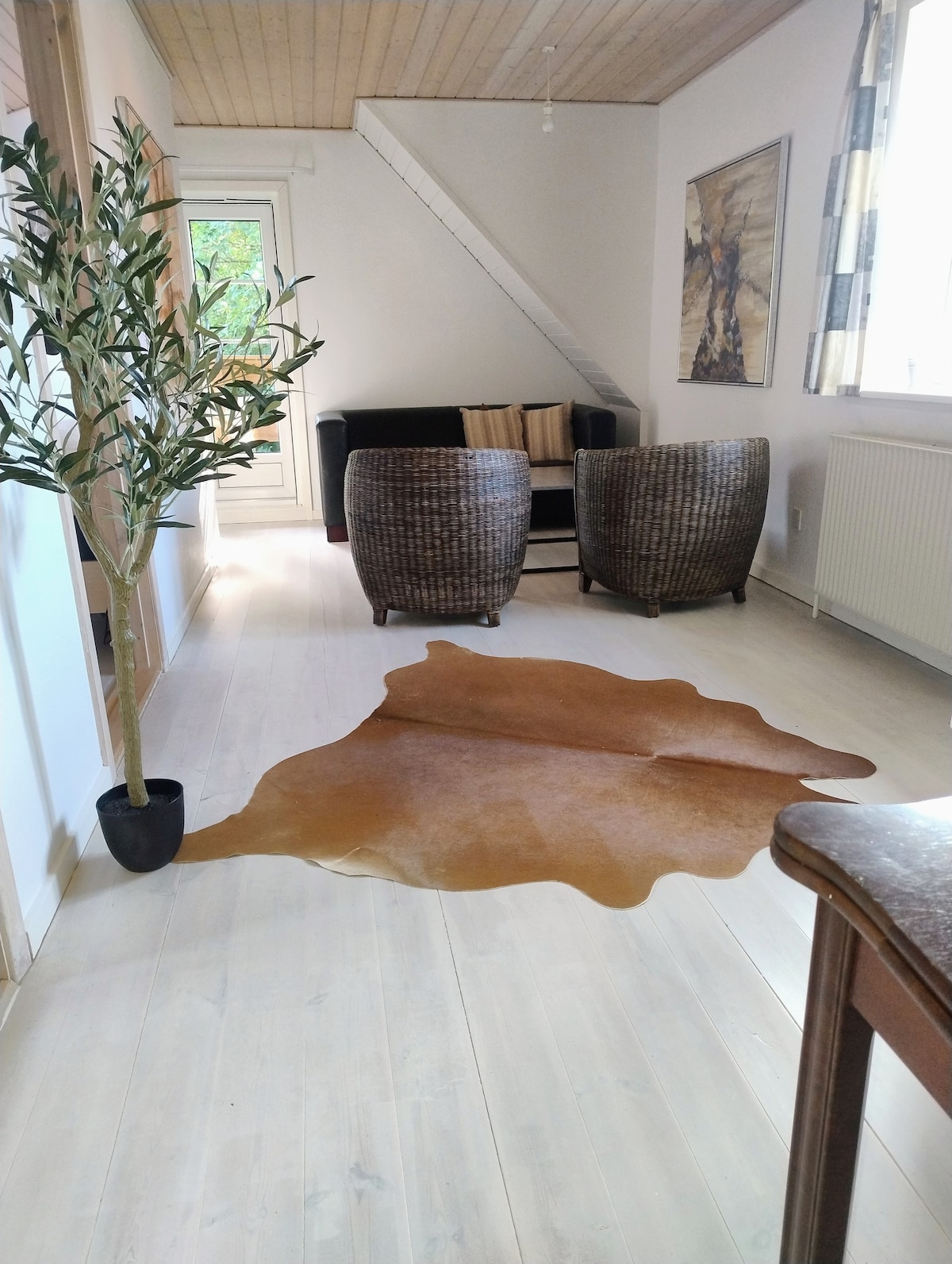 Bájos, otthonos és világos kisház két 69 m2-es szinten. A földszinten található a konyha, a nappali, a fürdőszoba és egy szoba. Az emeleten két szoba található. A víkendház olyan területen található, ahol számos lehetőség van gyermekek és felnőttek számára egyaránt. Nyugodtan vigyél magaddal 1 kutyát.