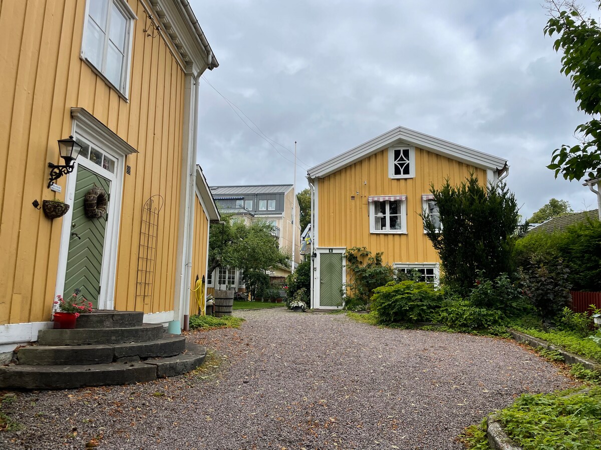 Ágynemű és fürdőszobai törülköző kölcsönözhető 100 svéd korona/fő áron. Ágynemű + fürdőszobai törülköző = 100 SEK/fő. A lakás nagyon központi helyen, egy külön parasztházban található, és 1 szobából, konyhából és zuhanyzóból/wc-ből áll, amely 43 négyzetméteren terül el. A hálószobában van egy osztható franciaágy, gardróbszekrény, kanapécsoport TV-vel. A konyhában van mosogató, tűzhely, mikrohullámú sütő, hűtőszekrény, kávéfőző és egyéb felszerelés. A konyhában van egy ágy. Emellett két összecsukható turistaágy és egy utazóágy kisgyermekek számára is rendelkezésre áll. A fagyasztó a szomszédos raktárban található.