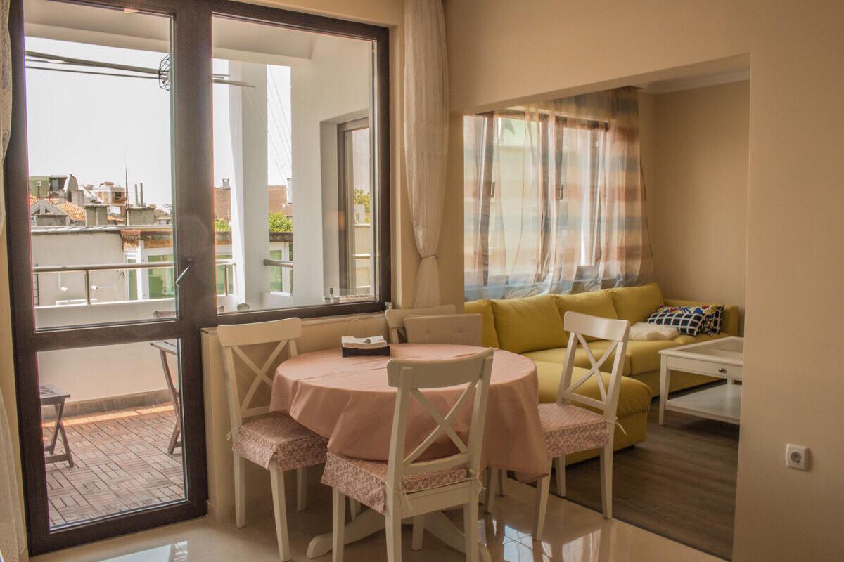 Az apartman nagyon világos és hangulatos, vadonatúj épületben található Várna szívében, közvetlenül a székesegyház mellett. Minden városnézés és összejövetel gyalogosan elérhető. A strand gyalog 15-20 perc alatt elérhető. Van egy nagy terasz, ahonnan lenyűgöző kilátás nyílik a tengerre és a városra, ahol elfogyaszthatod a reggeli kávédat, vagy csak lazíthatsz. A lakás tökéletes a nyaraláshoz vagy üzleti utazáshoz.