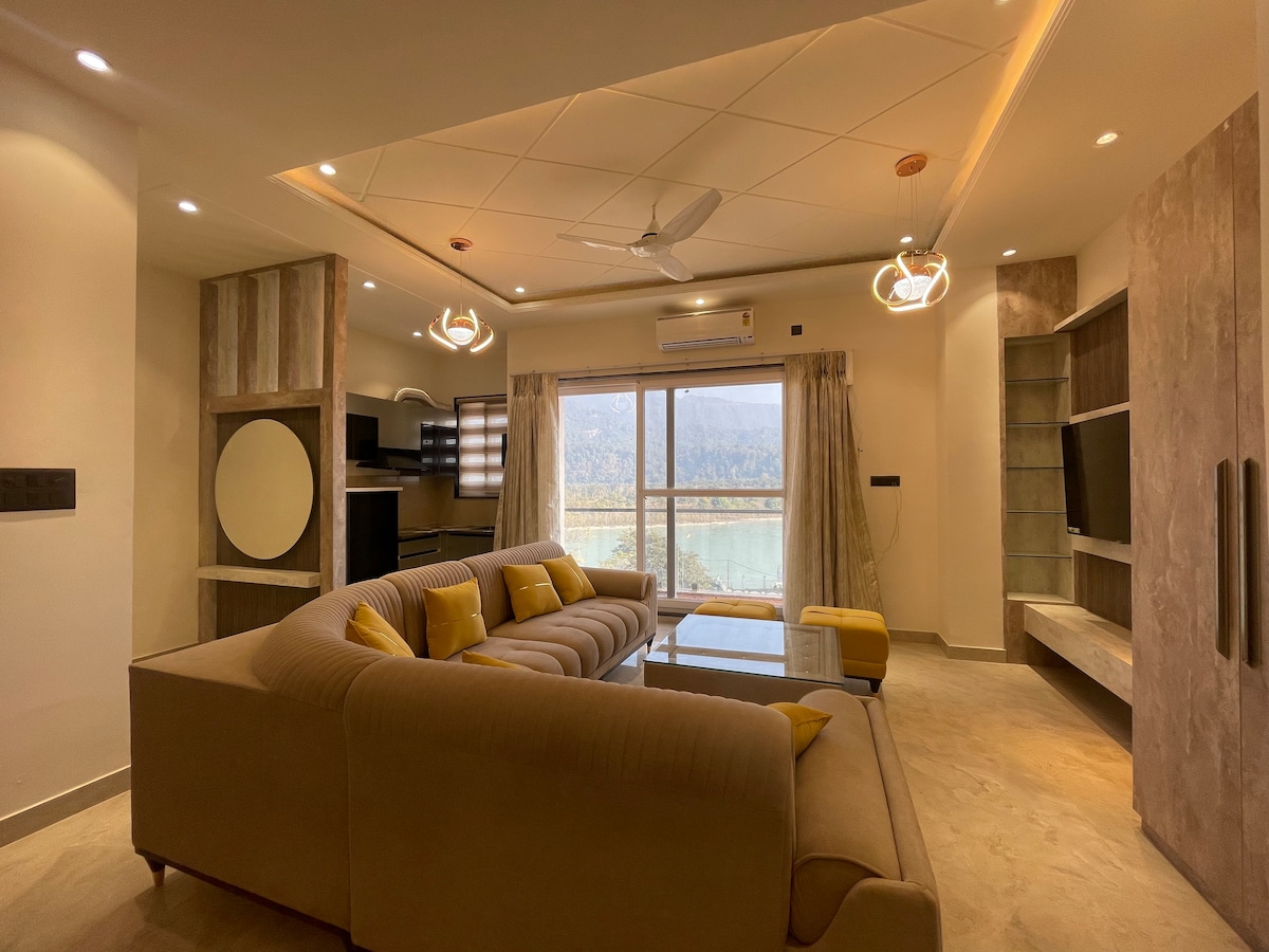 marine Luxe 1BHK – Ultra-Luxury Stay by the Ganges Stay at Marine Luxe by Ganga Blessings, a luxurious 1BHK apartment just 50 steps from Marine Drive, Rishikesh. Enjoy a king-size bed, a sofa bed in the lobby, and a fully furnished kitchen. Relax on the 360° river-view patio with breathtaking Ganga, mountain, and ghat views. With modern amenities, 24/7 caretaker support, and a VIP Ganga Aarti experience, this retreat offers the perfect blend of comfort, spirituality, and nature.