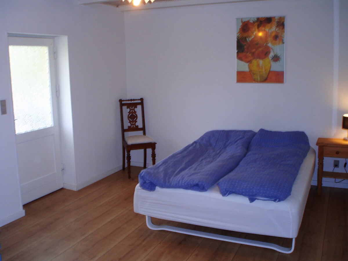 Ferielejlighed på 1. sal af vores nedlagte landejendom. Den er ca. 30m2. Her er dobbeltseng (160x200), lænestole, sofabord og TV. Spiseplads til 4 og et lille køkken med køl, frys, kogeplader, mikrobølgeovn, kaffemaskine, elkedel mm. Samt et badeværelse med bruser. Lejligheden er aflåst til resten af boligen, og har sin egen tagterrasse hvorfra der også er egen indgang. Fri wifi. Vi har 2 fjordheste, høns, geder og en sød udekat. Leje af fold til medbragt hest muligt.