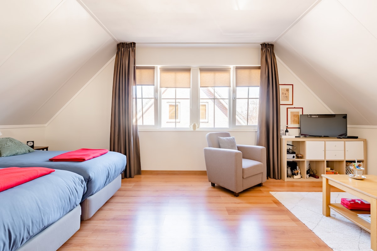 Kínálunk egy önálló, központi elhelyezkedésű panziót az 1. emeleten (átalakítva 2019-ben), reggelit kérésre, 10 €/fő áron. Saját bejárat lépcsőn keresztül a gyönyörű verandára, tágas, világos hálószoba ülősarokkal és tágas fürdőszoba. Központ, állomás, tömegközlekedés, különböző üzletek és étkezdék 1 km-re. Near Palace Het Loo, Apenheul, Julianatoren, Orpheus, Omnisport, Thermen Bussloo and the Kroondomeinen. A Veluwe gyönyörű természete különböző gyalogos és kerékpáros útvonalakkal.