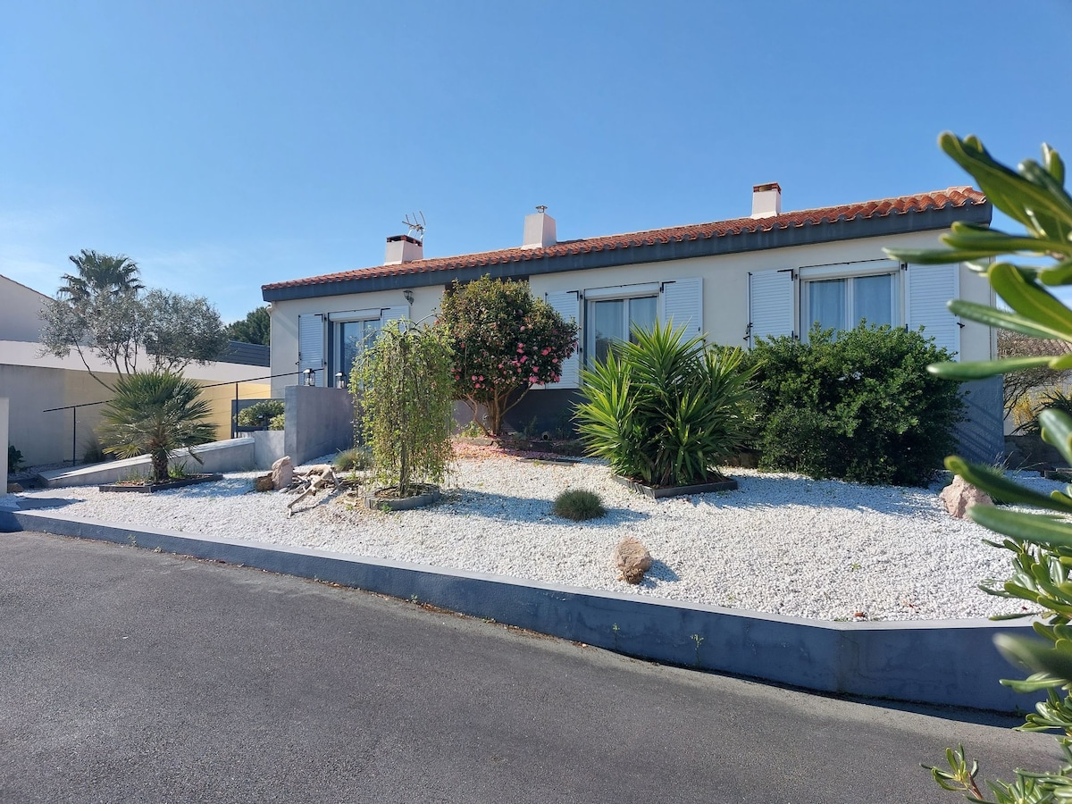 Ideal for holidays in the village center of Olonne (6 people), 10 minutes from the beaches of Les Sables d'Olonne (naturist, surfer beach), 30 meters from bike paths between sea, forests, marshes. 350 m from shops. Access from the train station,Bus. Rent house 110 m2 with garden and terrace. Open equipped kitchen, dishwasher. BBQ area, sunbeds, open veranda. 1 bathroom + a separate shower. Laundry. 2 TV, Wifi.