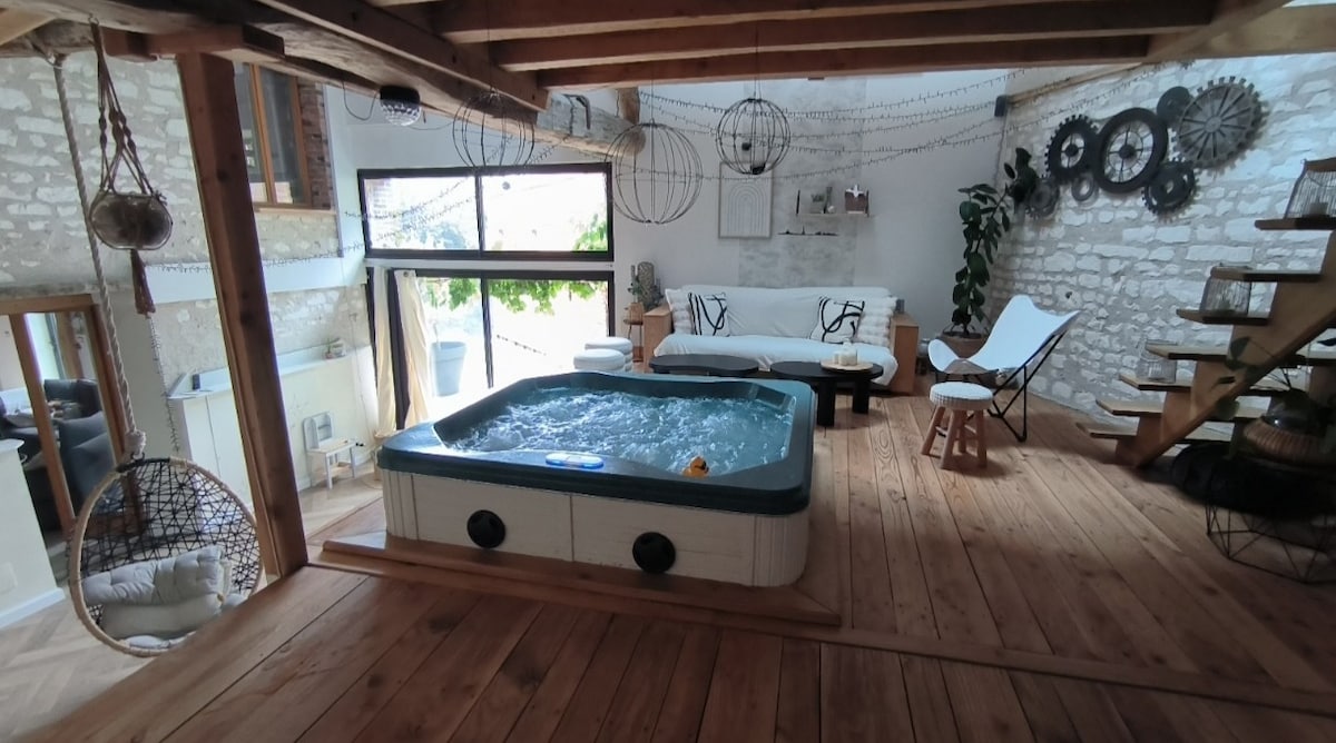 "Le nid des amoureux" est l'endroit idéal pour les couples en quête de détente et de zénitude. Cette maison de 70m2 entièrement rénovée a été aménagée et décorée dans des teintes et des matières naturelles par une déco addicte. Ce cocon douillet est l'endroit idéal pour se retrouver à deux et passer un bon moment en amoureux. Les + : jacuzzi, pièce massage, vidéo projecteur avec home cinéma Belles prestations, décoration soignée et jolies matières telles que le béton ciré, lin, coton bio..