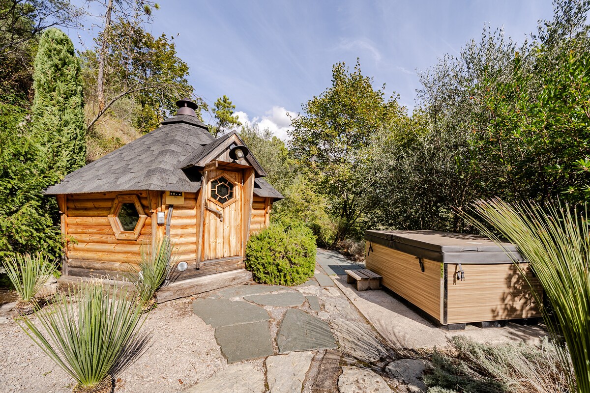 Si le chalet affiche complet aux dates souhaitées, vous retrouverez également le chalet des loups. Niché au bord de la rivière, ce chalet peut accueillir jusqu'à 4 personnes, offrant ainsi un cadre paisible et enchanteur pour une expérience ressourçante et relaxante. De plus, en option, un spa privatisé dans une grotte à 50 m du chalet, ouvert de 10 h 00 à 20 h 00 : 130 € pour 2 personnes pour un accès d'1 h 30.