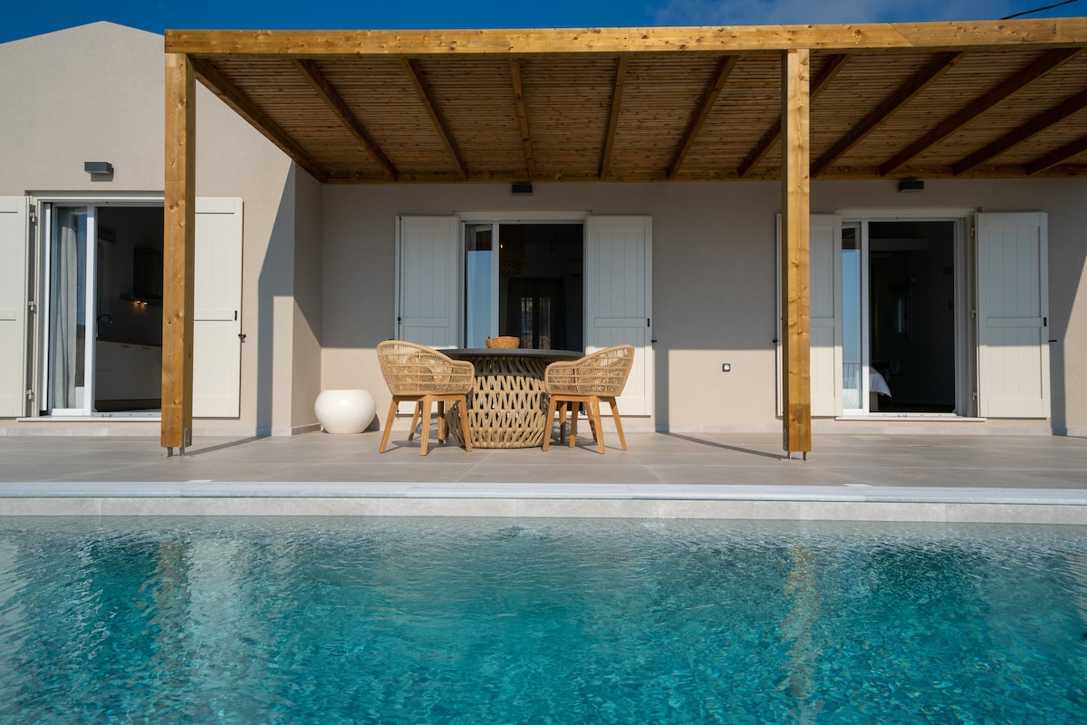 Menekülj a Villa Heliosba, egy luxusüdülőhelyre, amely lenyűgöző kilátást nyújt a tengerre, és tökéletes a pihenéshez és a felejthetetlen pillanatokhoz. 🏡 A villa három gyönyörűen kialakított hálószobával rendelkezik, amelyek mindegyike saját fürdőszobával rendelkezik, és kényelmesen elhelyezhet akár hat vendéget, miközben biztosítja a magánéletet és a kényelmet. 🌊 Lépj ki a lélegzetelállító végtelenített medencébe, amelyből panorámakilátás nyílik a kristálytiszta Jón-tengerre és Ithakára.