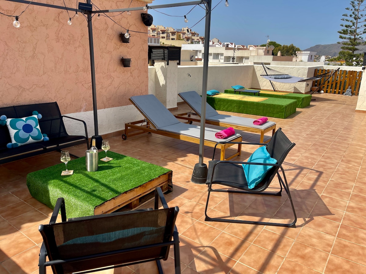 The perfect place to relax and enjoy. The apartment is located on top of a hill and a 5-10 min walk from te beach and the boulevard with all restaurants and bars. The air bnb has a huge terrace (70m2) with a roofed dining area, lounge and a barbecue. The views are spectacular. You will live between the mountains with a fantastic pool- and seaview. Inside we have all equipment and service you need. Mojácar and it's surroundings has a lot to offer.