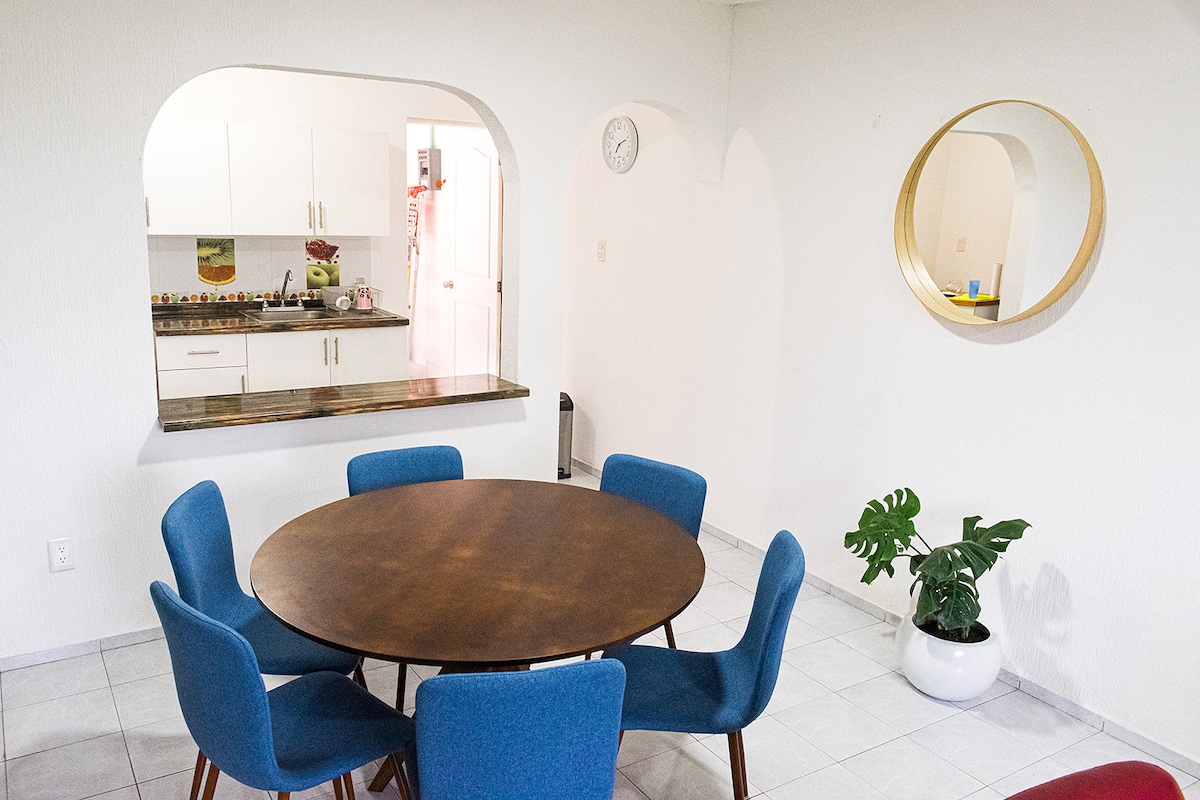 Gyönyörű lakás egy nagyszerű helyen! 5 perces autóútra található az Akvárium, a Villa Del Mar és a Regatas strandok, a városközpont, a Malecón del Pto de Veracruz, a Zócalo és a Portals, valamint a Café de La Parroquia. 1 háztömbnyire található a Regional Hospital of High Specialty és a Pediatric Tower épületétől. Van benne parkolóhely, elektromos kapu, gyors Wi-Fi-kapcsolat, felszerelt konyha, mosóközpont és MINDEN kényelmi szolgáltatás, hogy jól érezd magad a szálláshelyen.