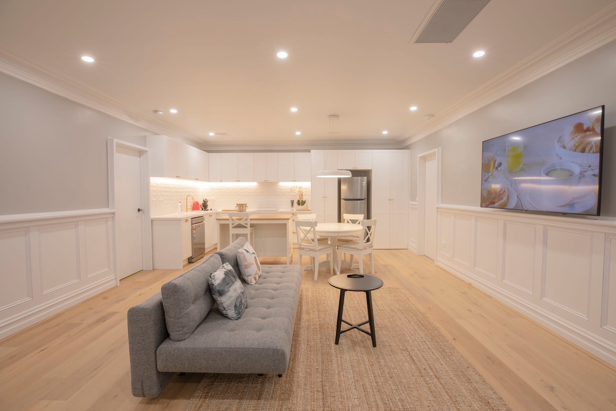 Dőlj hátra és lazíts a South Quarter Suite (SQS) lakásban, amely egy nagyon stílusos, egy hálószobás, konyhás és nappalival rendelkező lakosztály a gyönyörű otthonunk hátsó részén. Az SQS tökéletes egyedül utazóknak, egy párnak, akik csak rövid vagy hosszú távú, biztonságos szállást szeretnének egy szép, világos helyen, amely minden kényelmi szolgáltatást biztosít, amit csak kívánhatnak. Miért ne szállnál meg kényelmesen Mitcham szívében, mindössze 30 perc vonatúttal a városba, közel a félszigethez, kellemes festői autózással a Yarra-völgyhöz és a Dandenongokhoz.
