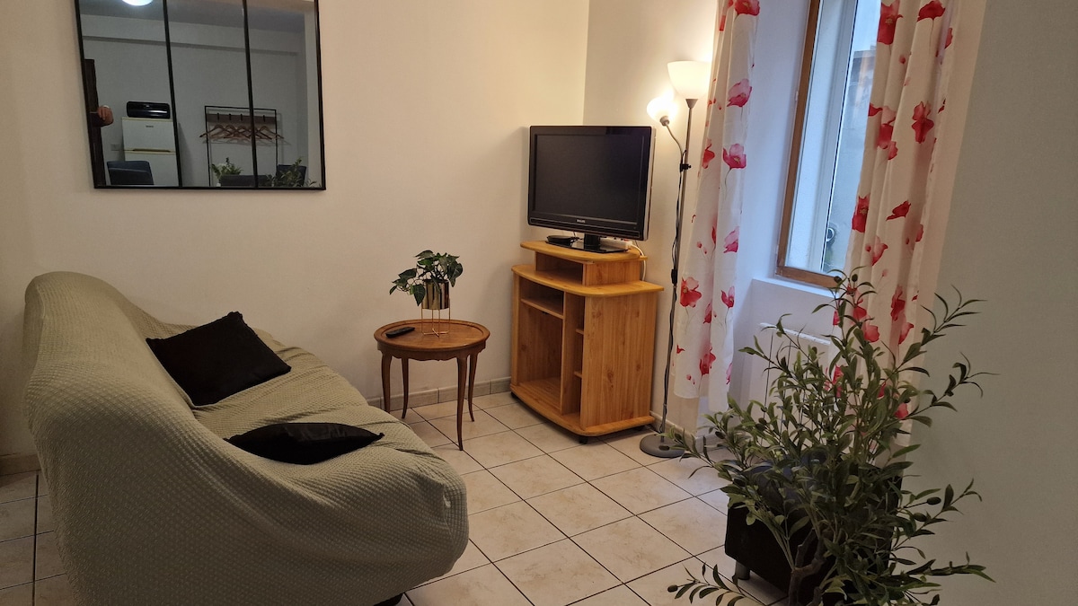 Studio lumineux au rez-de-chaussée dans une charmante petite copropriété. Situé en face du château en plein centre ville de gaillon et proche toutes commodités . Pièce principale aménagé d'un canapé et d'un vrai lit, cuisine équipée avec micro onde frigo vaisselle et ustensibles ,d'une sdb avec douche, WC, lavabo. Stationnement gratuit sur le parking en face de l'appartement pas de zone bleue comme le reste de Gaillon pas de risque d'amende. Linge de maison fourni. gel douche non fourni