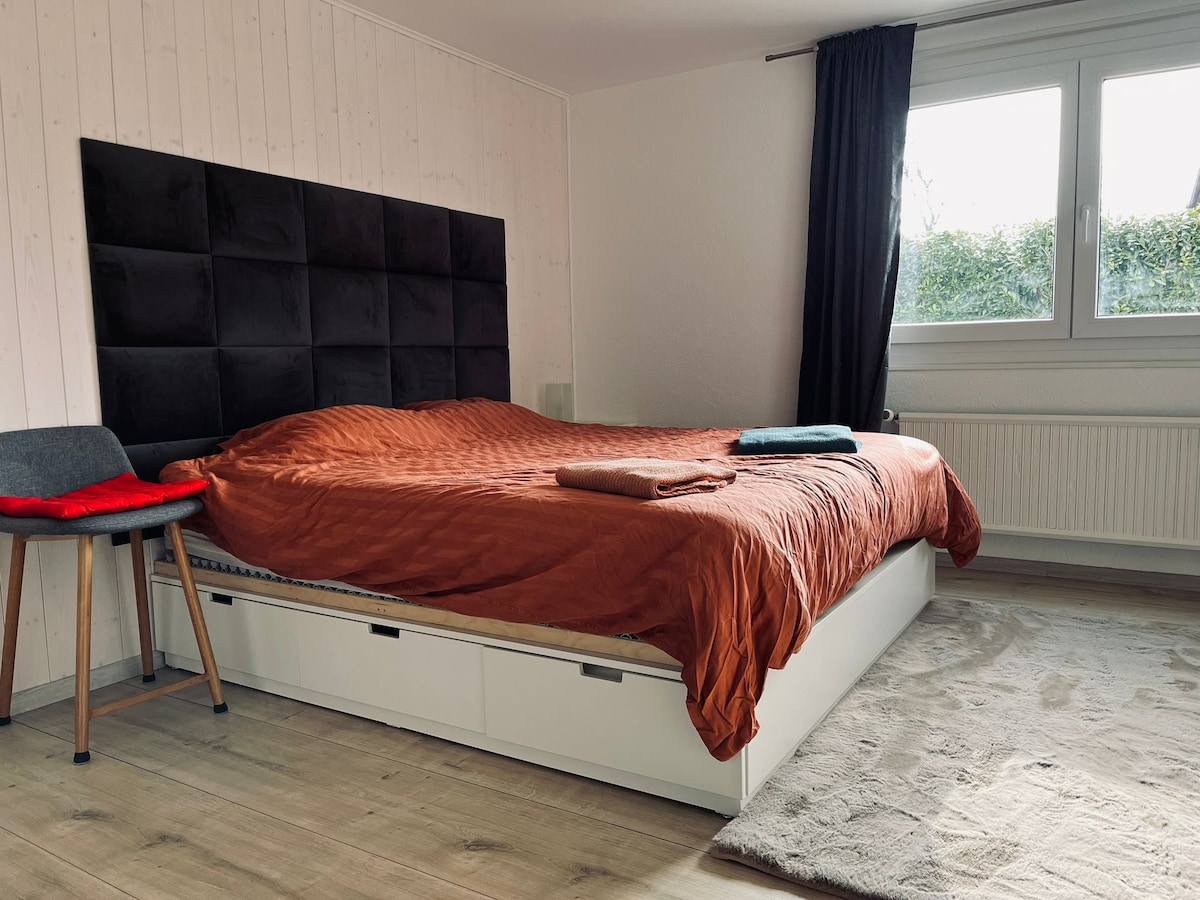 studio indépendant avec cuisine et salle de bain privé dans une villa familiale. Appartement spacieux avec jardin et terrasse exterieure à disposition. Proche du lac et du bourg de Lutry. Quartier très calme et entouré de verdure à 15 min environ en voiture de Lausanne et à 10 min à pied de la gare de Bossiere café offert pour le petit déjeuner lit parapluie sur demande. 1 place de parking disponible