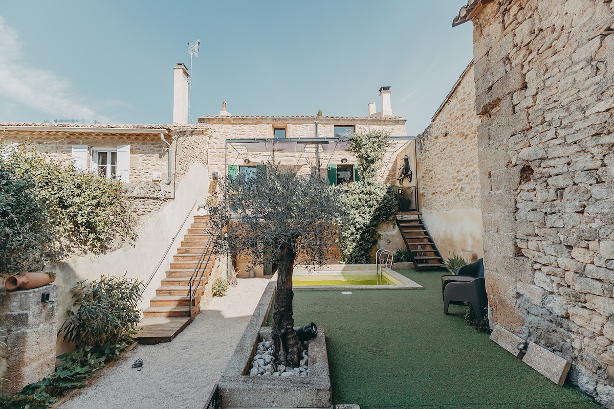 120 m2-es boltíves lakás, amely egy nyitott konyhából étkezővel és nappalival, 2 nagy szomszédos hálószobából, fürdőszobával és zuhanyzóval (mindegyik vécével), valamint saját udvarral rendelkezik. Egy falu szívében található a garrigues szélén, közel a Pont du Gardhoz (15 percre a Nîmes Pont du Gard TGV állomástól, 20 percre az Arènes de Nîmes-től, 25 percre Uzès-től, 45 percre Camargue-tól és a strandoktól). Hozzáférés a tulajdonosok medencéjéhez május elejétől szeptember végéig.