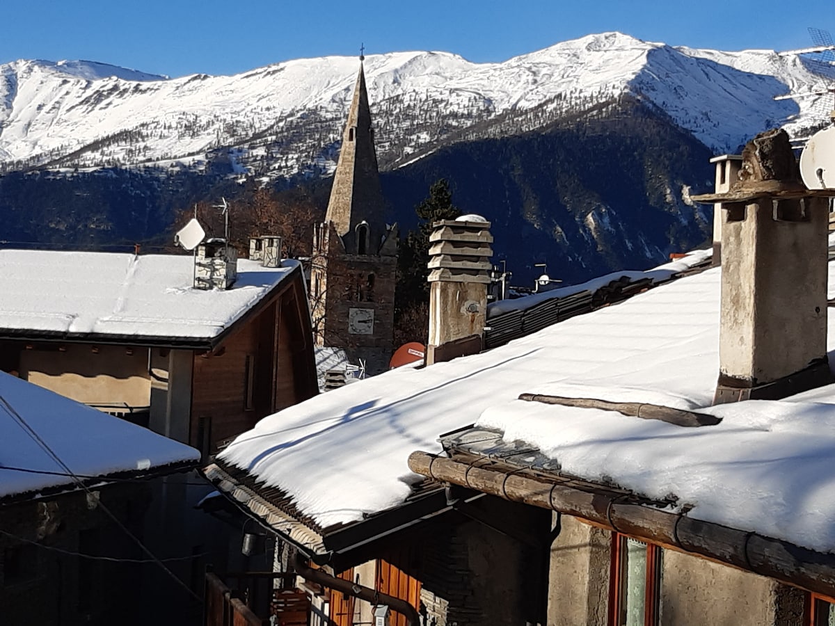 Far from the Madding Crowds at moderate distance from shops and slopes Comfortable apartment for 4 people, 2 more apt for 6 and 3 people are available in the building , in a typical Italian mountain village that offers a beautiful view of the valley and surrounding mountains, perfect for those who seek more nature in a calm and quiet surrounding. The village is very safe for children . The closest "Via Lattea"domain ski-station “Cesana”, is at 5 minutes driving distance by car. WIFI speed 100MB