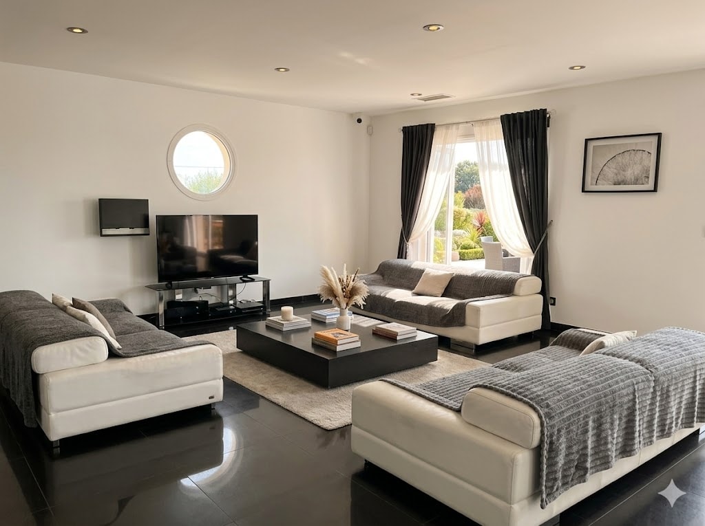 🌿 Szállj meg egy világos villában, saját kerttel, egy csendes, medencés lakótelepen. medence: május 15-től október 15-ig tart nyitva NYITVA: 09:00/21:00 szeptemberben 10:00 és 19:00 között Élvezd a hangulatos belső teret, a három légkondicionált hálószobát és a két külső teret, amelyek pihenésre vagy étkezésre szolgálnak. Közel a falu központjához és néhány percre a strandoktól!