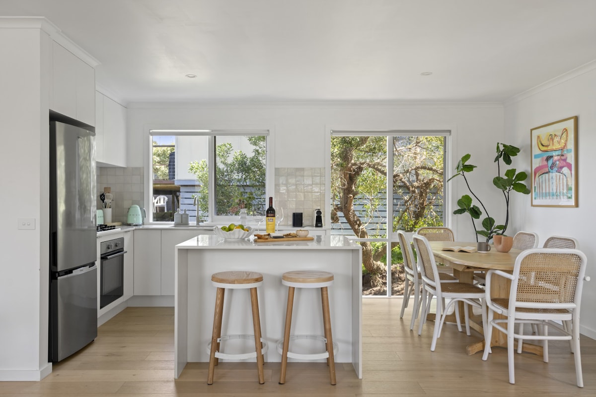 My place is close to the beach and the local cafe/restaurant. You’ll love my place because of the cosiness, the high ceilings and the quiet, secluded setting. My place is good for couples and families. The main bedroom has a DOUBLE bed. The loft is set up with two single beds. There is a floor couch that could be used for a 5th. I have a portacot if needed. The cottage has its own private courtyard with a gas BBQ. It is located in a very quiet court, just a 5 min walk to the beach and cafe.