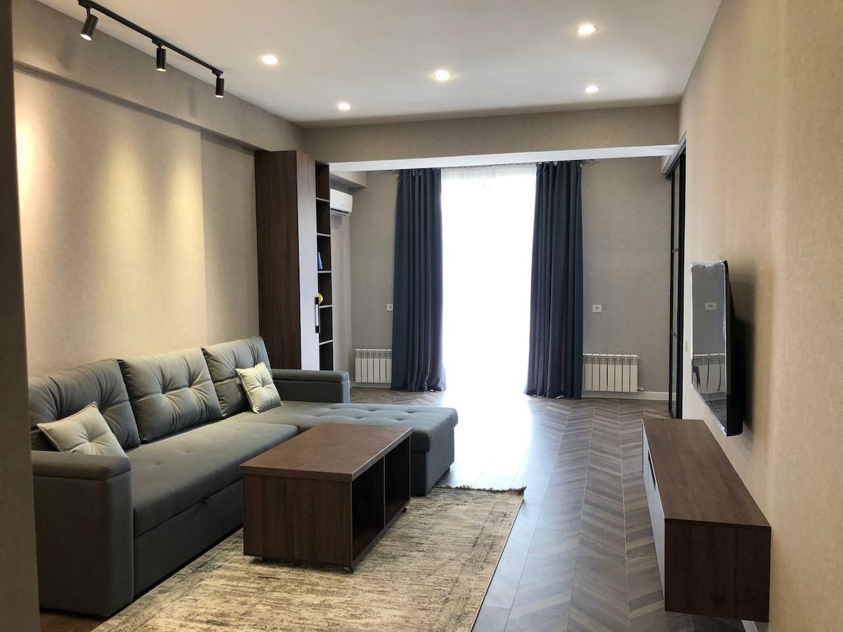 Kényelmes, luxusapartman a városközpontban található, frissen készített Elite házban. A ház éjjel-nappal feltűnő. Éjszaka az épület nagyon szépen ragyog, még távolról is látható. Az épület földszintjén éjjel-nappal nyitva tartó szupermarket és gyógyszertár, EDZŐTEREM, szépségszalonok és bank található. A lakás nagyon világos és kényelmes minden kényelmi szolgáltatással. Az épület biztonságos és éjjel-nappal őrzött, a területen játszótér is található.
