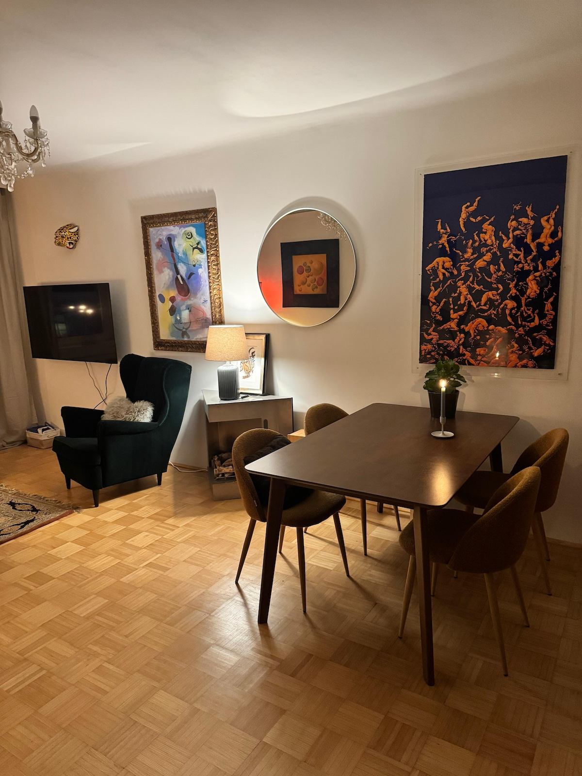 Üdvözlünk a művész Mariahilf-i lakásában. Ez a lakás páratlan melegséggel, extravaganciával és vintage hangulattal várja Önt. Függetlenül attól, hogy néhány napig sétálsz-e Bécsben, részt veszel-e egy projektben, vagy csak kikapcsolsz. Ez a lakás tökéletes hely arra, hogy hazagyere és jól érezd magad. A lakás nem egy közös lakás, de csak a tiéd és a társa ebben az időben.
