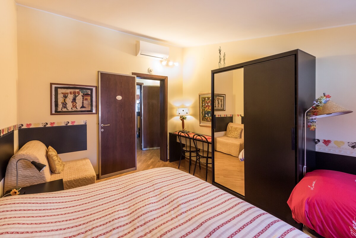 The apartment has 2 double bedrooms (total 6 bed accomodation) and 2 ensuite bathrooms with shower, toiletries and hairdryer. Each room has air conditioning, a flat screen TV, a closet and a desk. The apartment has a living room with frigobar, fridge, microwaves, electric cooker, coffee machine, tea/water boiler. A private garden and private parking inside the property. We offer a rich breakfast everyday in the living room. Shuttle service to/from Airports, Milano city centre and stations.