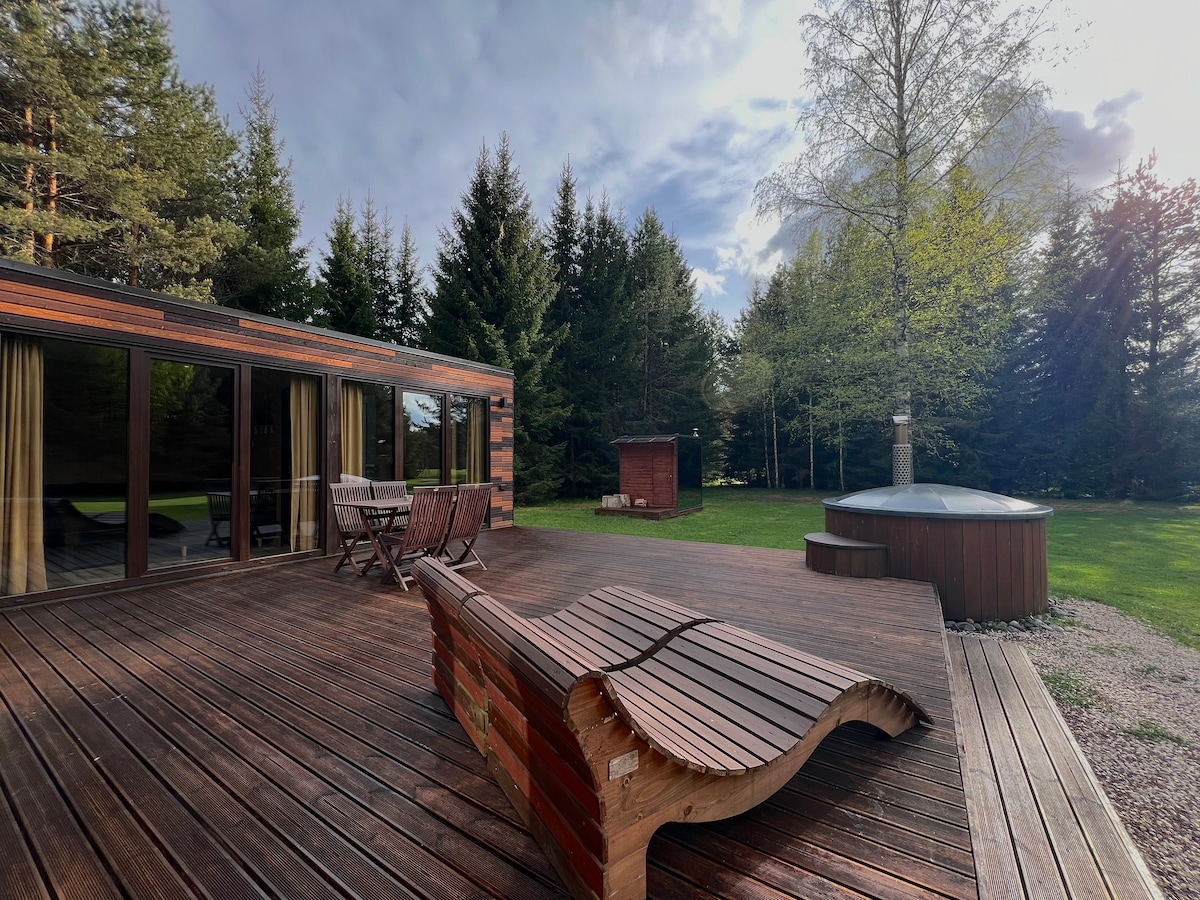 Egy nagy privát kerttel rendelkező erdei ház 30 percnyi autóútra található Tallinntól. A házon belül van egy elektromos szauna (legfeljebb 6 óra a ház árában), pezsgőfürdő (+50eur) és egy kültéri fatüzelésű panoráma szauna(+ 30eur) A nagy teraszon 2 napozóágy és kültéri bútor található, valamint a vendégek grillezővel is rendelkeznek. Légkondicionáló, padlófűtés a zuhanyzóban/szaunában és beltéri kandalló a nappaliban