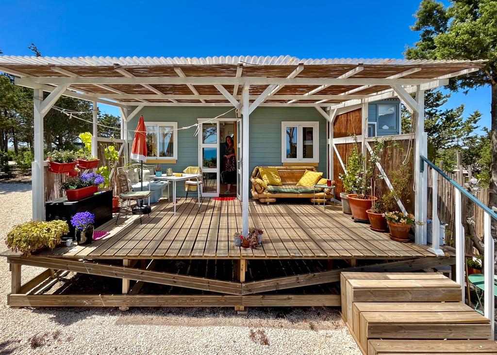 The two wooden houses, are set in a tranquil cork and eucalyptus environment. You´ll be rewarded by green grounds. The air is beautifully scented by the trees. As soon as you arrive, “the final 600 meters are on an unpaved road, typical for the Algarve countryside,easily accessible with a regular car and part of the boho, slow-living experience” you can go for a swim in the azure pool or read a book on your terrace. As serene as you could hope to find, yet an easy drive from wonderfull beaches.