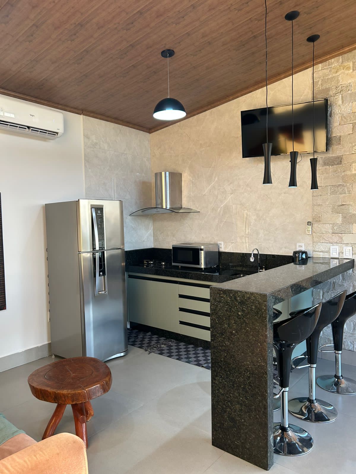 Pihenj ezen a tágas, teljesen légkondicionált helyen. A Pirenópolistól 5,5 km-re található faház szuper tágas hálószobával és king-size ággyal rendelkezik, így nagyszerű azok számára, akik szeretik a teret és a kényelmet! Van egy fürdőkádunk és egy fűtött medencénk, ami tökéletes a hideg éjszakákra! A konyhánk teljesen felszerelt, mikrohullámú sütővel, turmixgéppel, légsütővel és alapvető konyhai eszközökkel! Ágyneműt és törölközőt biztosítunk! Van Wi-Fi, légkondicionálás és kávéfőző!