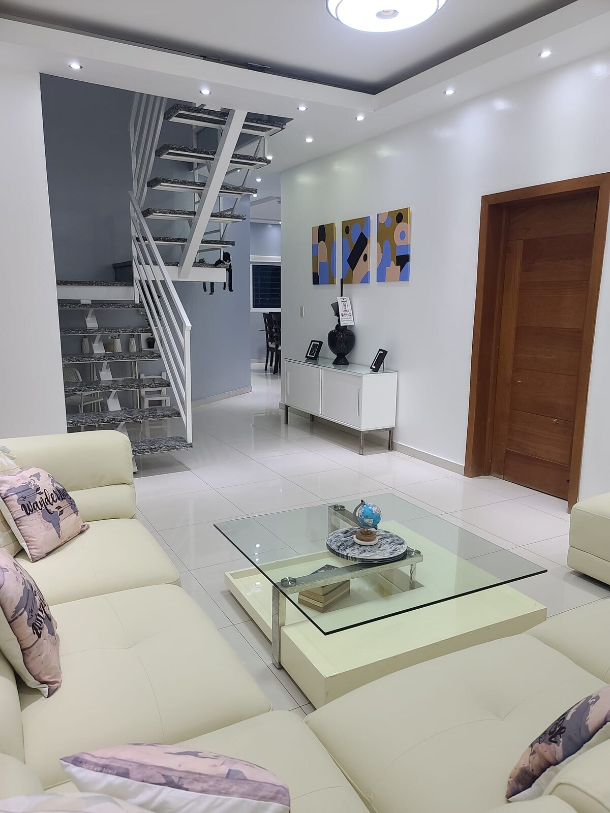 Élvezd a tágas, kétszintes penthouse-lakást Santo Domingo Oeste-ben, amely ideális családok, turisták vagy üzleti utazók számára, és akár 6 vendégnek is helyet ad. ✔️ 3 nagy hálószoba, mindegyik saját fürdőszobával és légkondicionálóval ✔️ Teljesen felszerelt konyha, nappali és étkező ✔️ Modern, tiszta és funkcionális elrendezés ✔️ Privát, biztonságos és csendes környezet Az amerikai nagykövetségtől mindössze 18 percre, a Las Américas nemzetközi repülőtértől (AILA) pedig 40 percre található, így közel van a város legfontosabb helyeihez.