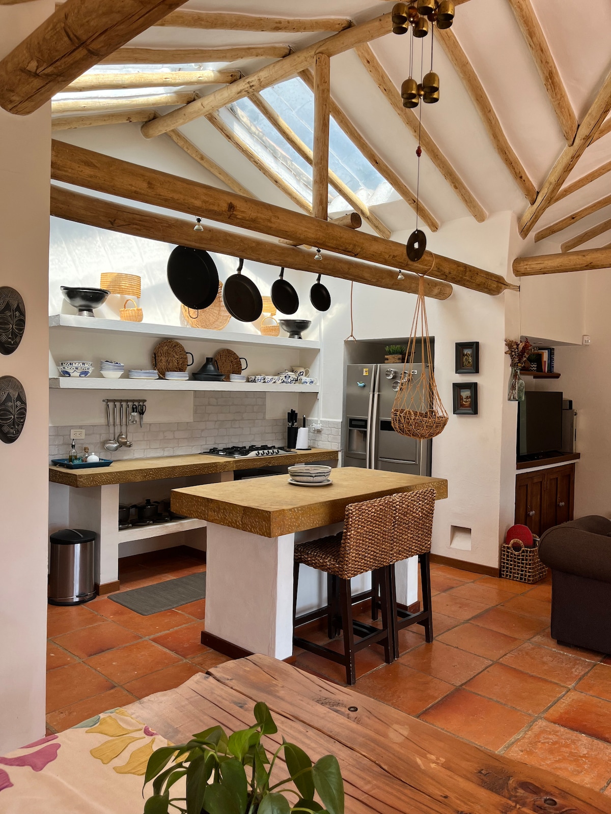 A Casa del Viento a regionális építészetet és a kortárs dizájnt ötvözi, hogy kényelmes és autentikus szállást kínáljon. A nyitott konyha arra ösztönöz, hogy csoportosan töltsétek az időt, a hegyekre néző terasz és a grillezőhely pedig tökéletes hangulatot teremt a pihenéshez és a naplemente élvezetéhez. Csendes vidéki területen található, de csak 2,5 km-re Villa de Leyva központjától. Minden helyiség úgy lett kialakítva, hogy stílusosan pihenhess. Írj nekem a foglaláshoz.