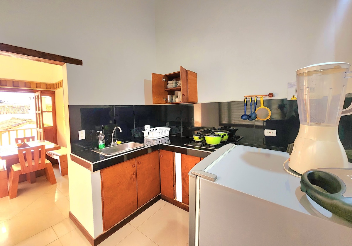 Espectacular apartamento equipado con increíbles detalles de buen gusto. Lugar con ubicación inigualable en Villa de Leyva. A pocos pasos de la Plaza Mayor, está cerca de todos lo puntos de interés como museos, restaurantes y parques. El lugar está impecable. Cuenta con TV, WiFi, 2 baños con agua caliente. Tiene un balcón hermoso para disfruta bellas vistas. El lugar tranquilo para descansar. Este alojamiento es de índole familiar. Solo se aceptan grupos familiares.