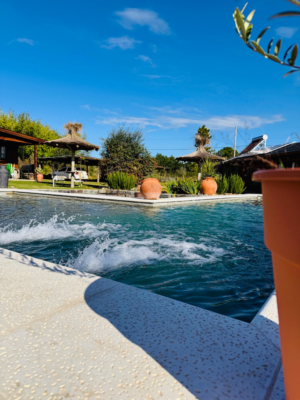 Érezd otthon magad, a természetben. Meghitt és hangulatos hely, mindössze 500 méterre a gyógyfürdőtől, homokos strandokkal. Házi készítésű és egészséges reggeliket biztosítunk, amelyeket minden vendégnek személyre szabunk, felár ellenében. Szüneteltesd, és éld át a madarak hangját és a hegyekre nyíló kilátást. 15 km-re vagyunk Villa General Belgranótól, 8 km-re Santa Rosa De Calamuchitától és 20 km-re Yacantótól. A Santa Rosa Tourism Secretariat segítségével.