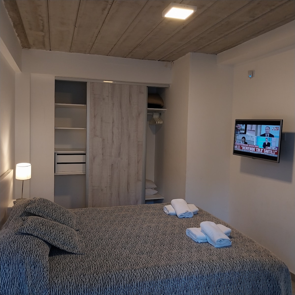 Modern, tágas és világos apartman 2 szoba teljesen felszerelt legfeljebb 4 vendég számára erkéllyel, terasszal és grillezővel. A főúttól 1 háztömbnyire, a strandtól és a Villa Gesell központi részén található. Automatizált fedett garázsok. Légkondicionálás és mennyezeti ventilátor. Tévé, széf, ingyenes WI-FI. Üdvözöld a száraz reggelit. Fehér ruhák. Csak családoknak nem adunk bérbe fiataloknak. Az ingatlan lift nélkül