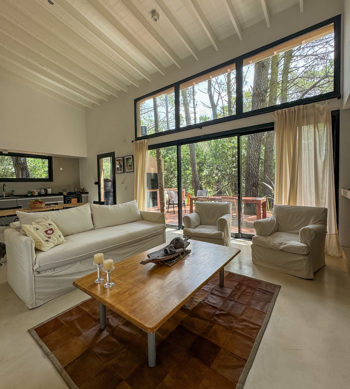 Casa en Cariló 3 háztömbnyire a strandtól fűtött medencével, parkkal és grillezővel. -5 szoba . Legfeljebb 7 ágy 9 vendég számára . -Pileta with park (option to heat between 20°30°) extra cost. Légkondicionálás: novembertől áprilisig) - 24 órás őrzött ingatlanriasztó -Wi-Fi - TV - A/C in quincho and en suite room - Minden szobából kilátás nyílik a parkra