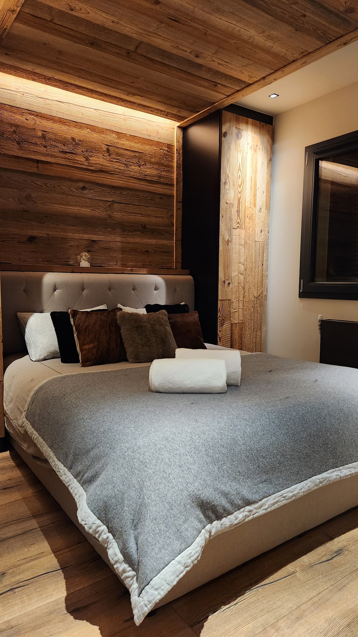 Az ásvány- és régi fa sikeres keverékével ez a lakás újraéleszti a Savoyard faház stílusát. Igazi himnusz életstílussal, minden úgy van kialakítva, hogy élvezze a hegyen való tartózkodás előnyeit. Kiemelt témák: teljesen felszerelt presztízslakás, lenyűgöző kilátás a Mont Blanc-ra, sípálya, wellnessrészleg szabadtéri medencével, jacuzzi és szauna, fitneszterem, számos ingyenes tevékenység a Village Five Peaks Collectionben
