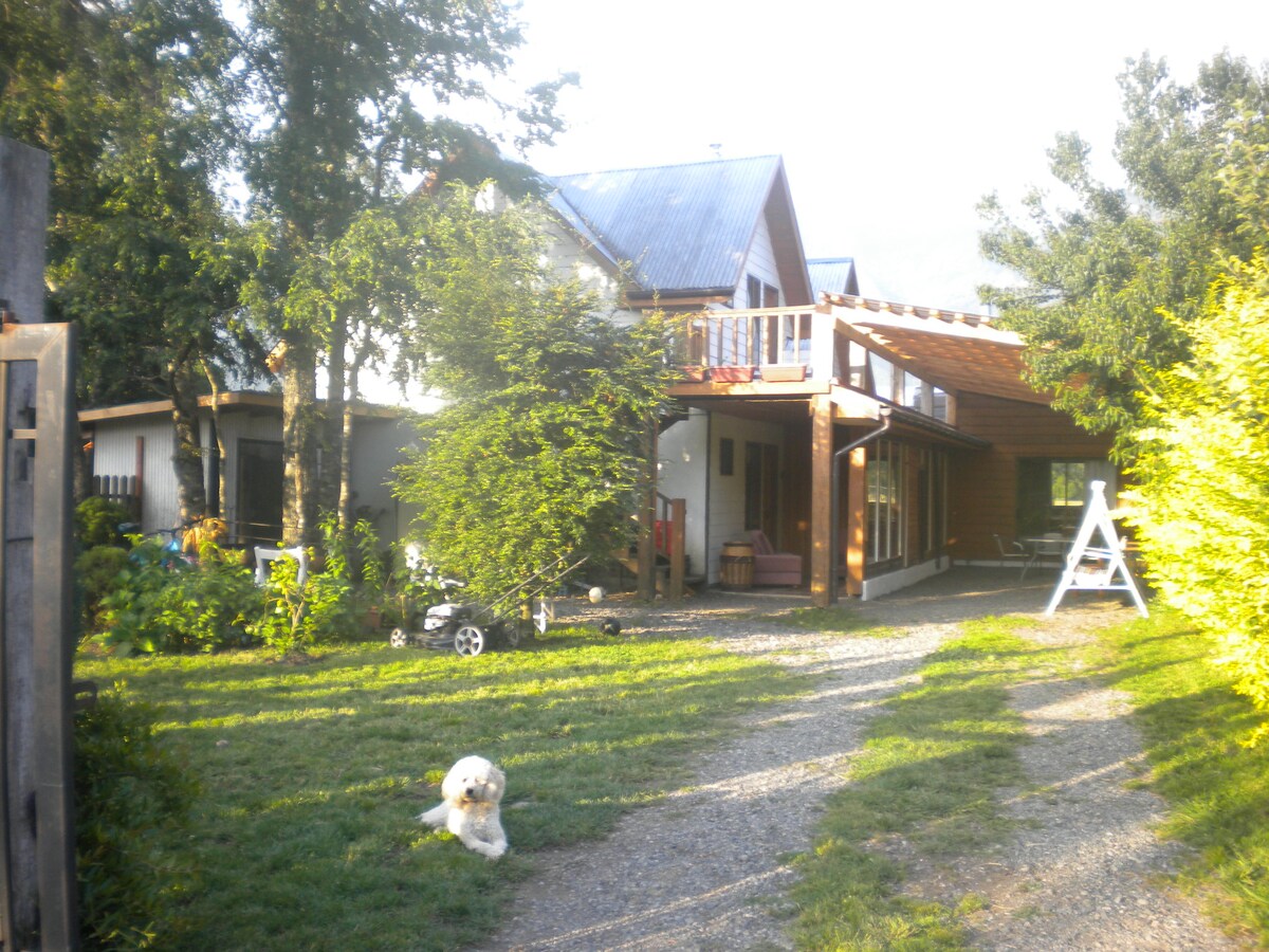 Üdvözlünk a BHL Ecolodge-ban található Hualle Roomban, egy hangulatos és csendes helyen, amely ideális azok számára, akik szeretnének kikapcsolódni és élvezni La Araucanía természetét. Franciaágy, rusztikus és elegáns dekoráció, amely a fogadó természetes és autentikus stílusához kapcsolódik. Hozzáférés a közös területekhez: Hangulatos nappali és teljesen felszerelt konyha, Nagy terasz pergolával, asztalokkal és napernyőkkel, ahonnan gyönyörű kilátás nyílik a völgyre, és kapcsolódhatsz a természeti környezethez.