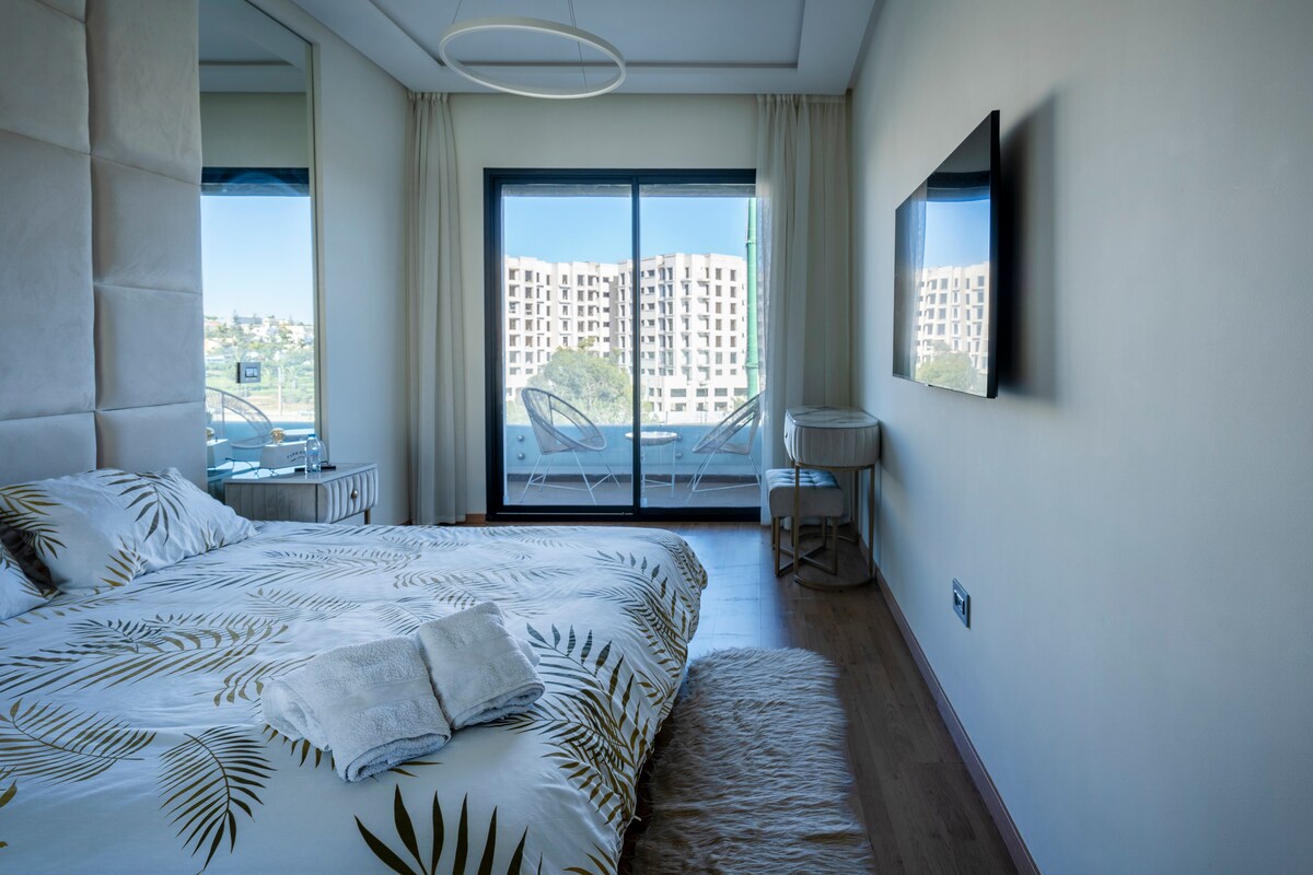 Butterfly 703🦋, a béke menedéke, ahol a modern rezidencia eleganciája keveredik az 5* -os szállodák kényelmével Casablanca szívében! Pihenj egy tágas, modern dizájnnal rendelkező nappaliban, amely 55’-es, Netflixes és IPTV-vel ellátott Smart TV-vel van felszerelve az abszolút pihentető estékhez. A szoba, egy igazán otthonos fészek, békés és helyreállító éjszakákat ígér ☁️ A saját erkélyedről nézd meg a város feletti csodálatos naplementéket, így az ott-tartózkodásod minden pillanata felejthetetlen! ✨