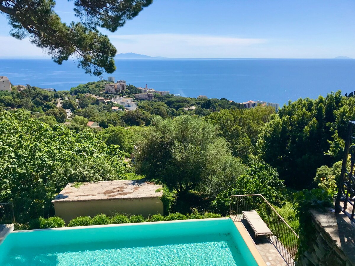 Egy Cap Corse kastélyban egy teljesen felújított földszinti lakást bérelek, ahonnan lenyűgöző kilátás nyílik a tengerre és a toszkán szigetvilágra. A ház olyan ingatlanon található (körülbelül 5000 m2), amelyet teraszokká alakítottak át ( olajbogyó, antik búza, zöldségkert ), amelyhez hozzáférhetsz. Bastiától 7 km-re északra, San Martinu faluban, a magasban található hely ideális a Cap Corse és a Haute Corse felfedezéséhez. A nyugalom és a varázslat garantált!