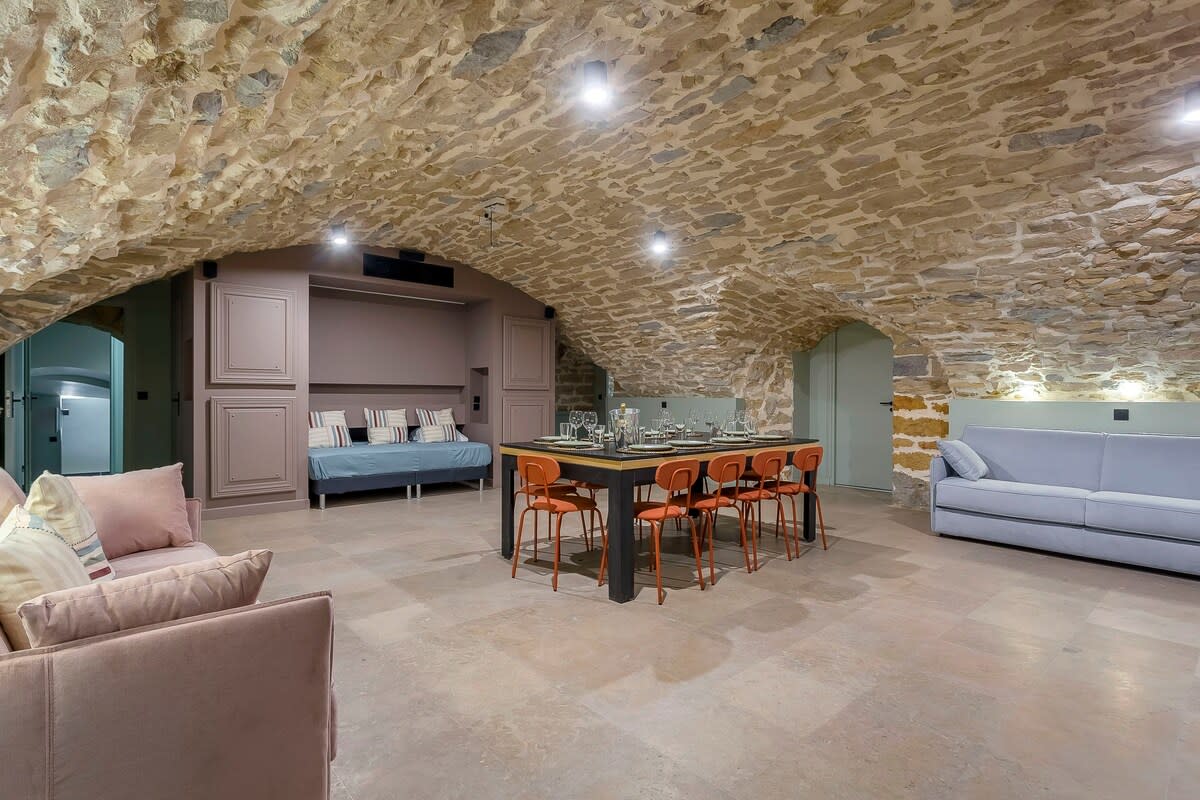 Fedezz fel egy szokatlan és meghitt helyet, amelyet igazi kiruccanásként terveztek két fő számára. Ez az egyedi környezetben elhelyezkedő, ablak nélküli szerelmi szoba úgy lett kialakítva, hogy meghitt légkört teremtsen, amely elősegíti a kikapcsolódást és az intimitást. Élvezd a privát jakuzzit a teljes kikapcsolódás pillanatában, egy egyedülállóan bájos, szabadon hagyott kőfalú térben. Ezek enyhe, természetes, ásványi szagot áraszthatnak, ami hozzájárul a hely autentikusságához és egyedi karakteréhez.