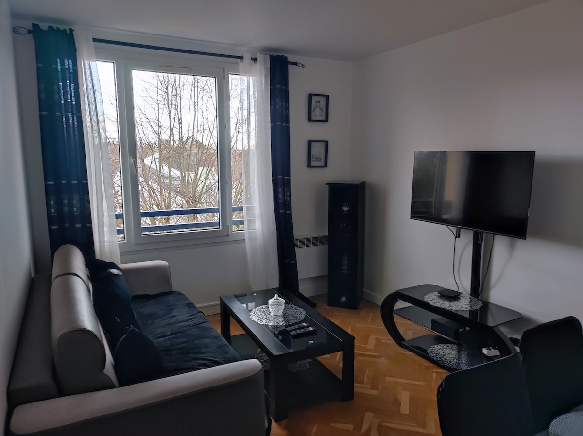 Szállj meg ebben a szép lakásban Villiers sur Marne városközpontjában. A lakás az 1. emeleten található, lifttel. Egy nagy nappaliból, egy külön, teljesen felszerelt konyhából és két független hálószobából áll. Élvezheted a kertre néző kis teraszt. Az RER E lábánál található, 20 percre Párizstól és 20 percre a Disneytől. A lakásban van parkolóhely. Biztonságos lakóhely. Internet, TV-szalon, Chromecast, Bluetooth.