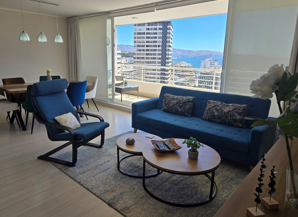 Welcome to "Oasis Costero" A new, fully equipped apartment on the waterfront with an ocean view in Concón. - Outdoor pool available between November and March. - Private parking. - Spacious terrace with ocean view equipped with an electric grill. - Includes bed linens and towels. - WiFi, and a Smart TV. - Fully equipped kitchen. - Safe and quiet area. - Just steps away from Beaches, Restaurants and Bike Paths.