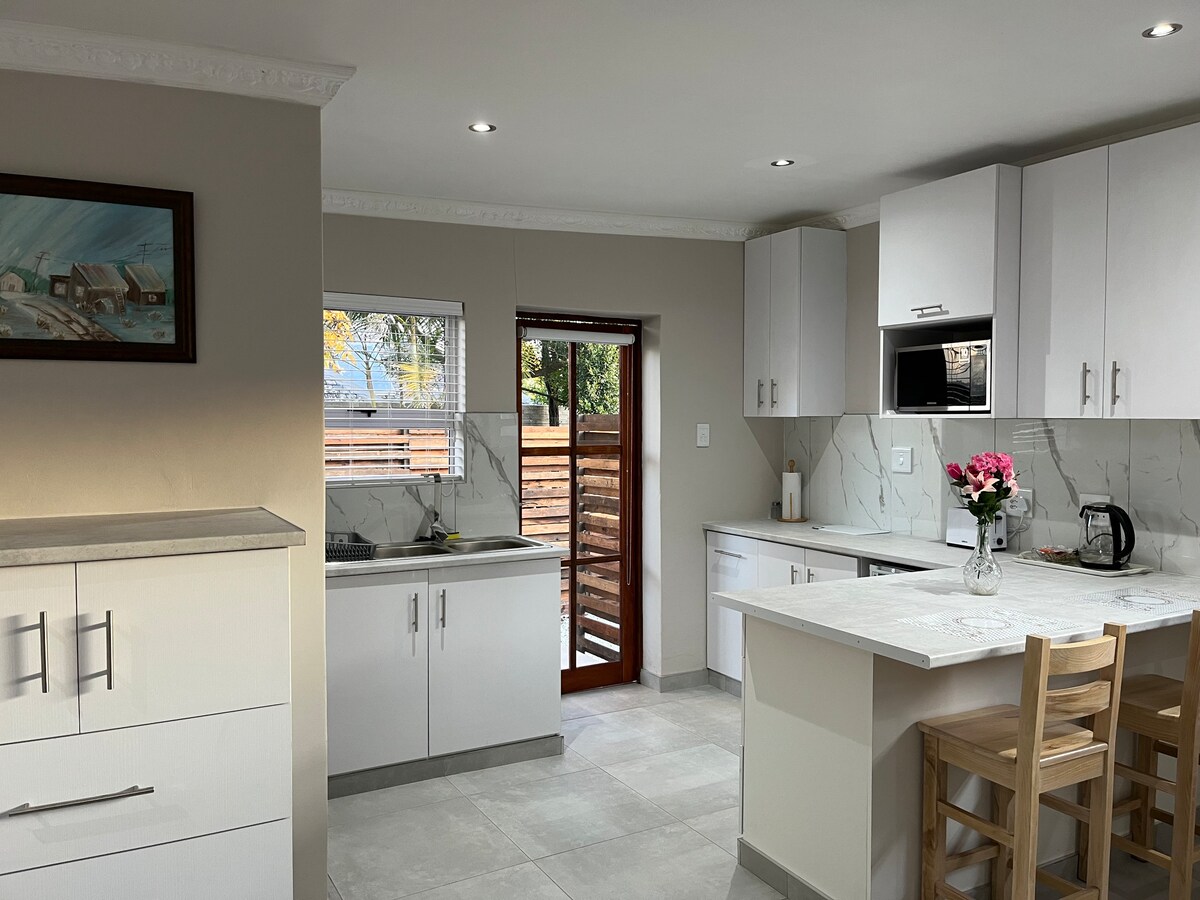 Privát, egy hálószobás, légkondicionált kerti lakás. Tökéletes búvóhely minden alapvető készülékkel, mint például a Weber Braai, a Nespresso-kompatibilis kávéfőző, a légsütő és a mosógép. Kényelmes ágynemű. Egy békés külvárosban található, mindössze 2,5 km-re a Hemingways bevásárlóközponttól és az Abbotsford Village-i éttermektől és szupermarketektől. Közepes méretű autógarázs a helyszínen. Vendégeink újra és újra visszatérnek.