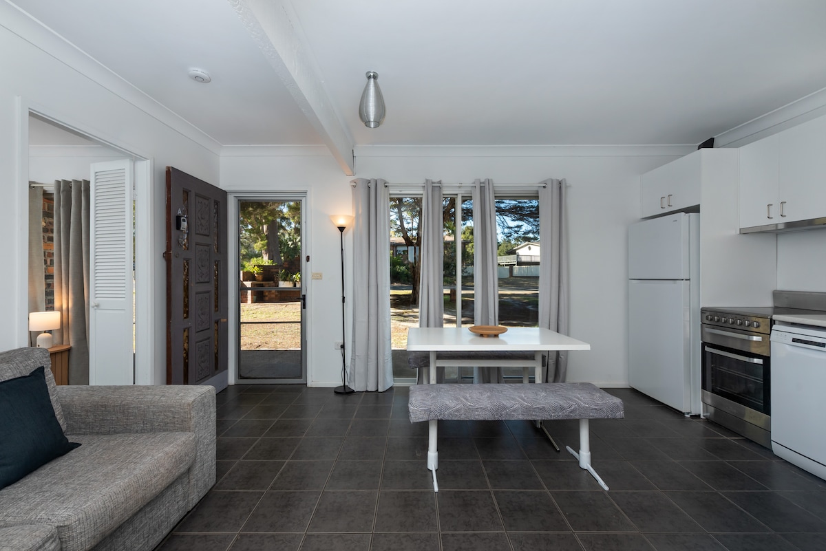 A bright comfortable Studio with private entrance and courtyard. No need for sand in your car as beach is a 3 min walk. Enjoy the stunning sunrises on Nelson Beach. You are situated on the White Sands Walk to Hyams Beach it is truly spectacular. Unfortunately not suitable for children or pets. Follow us on Nelson’s Oasis Jervis Bay. Looking forward to welcoming you soon.