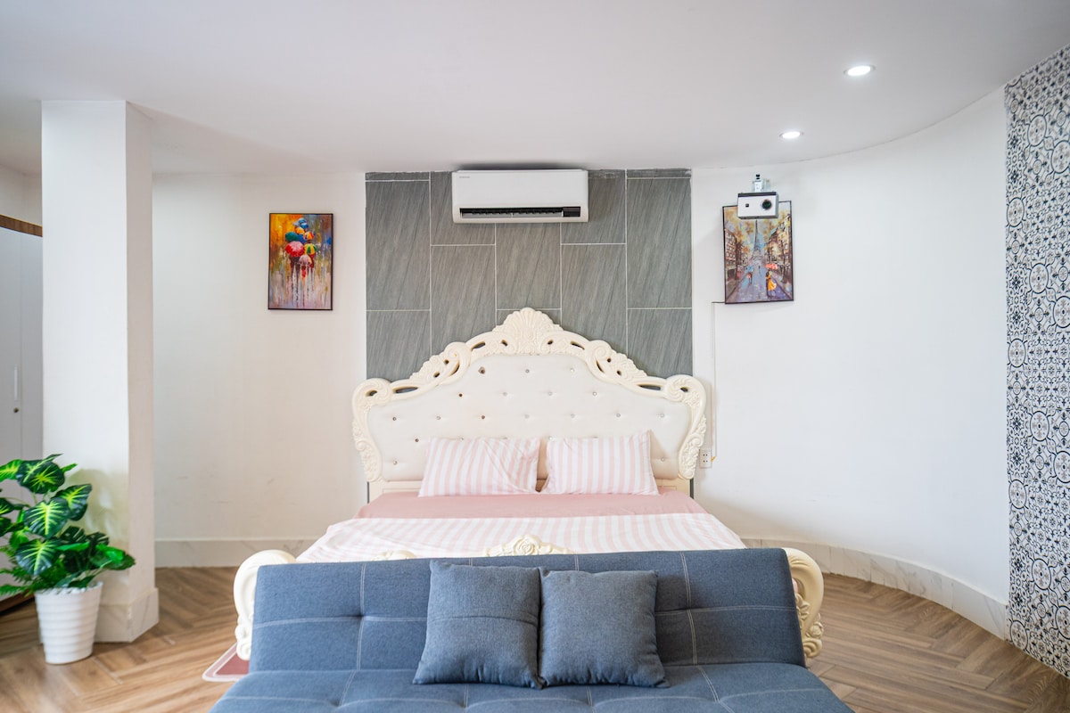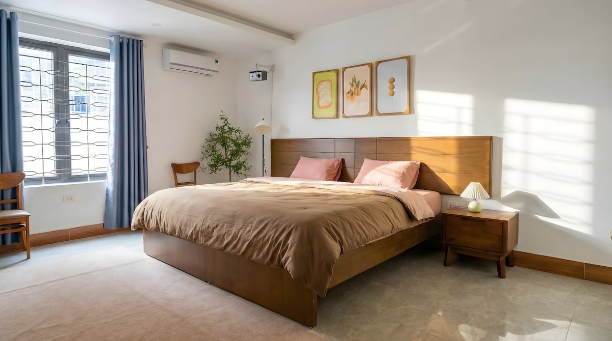 Guests adore Mango Homestay Hoang Huy's Deluxe City View room for the ultimate comfort and value. Our self-check-in system with secure lockers ensures maximum privacy and flexible timing. This Deluxe Room offers a pleasant city view, while remaining a budget-friendly choice. It is fully equipped with modern amenities, including a neat workspace and a high-quality projector with Netflix for your entertainment. It's the perfect blend of convenience, quality, and savings for your Hai Phong stay