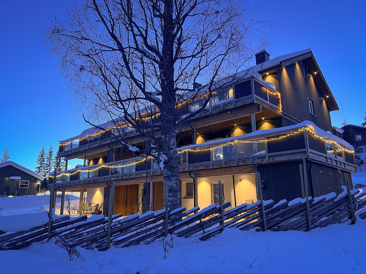 Stílusos víkendház, 960 méterrel a tengerszint felett, idilli szabad területtel több oldalon. Napfényes teraszok és gyönyörű kilátás a hegycsúcsokra és a horgásztavakra. A hegyi túra és a sípályák közvetlenül a kunyhó ajtaja előtt kezdődnek. 2018-ban a „Hytteliv” magazin 10 oldalas cikket írt a víkendházról. A víkendház nagyon magas színvonalú, és 5 hálószobából (16 fő számára), 2 nappaliból + alagsori nappaliból áll, ahol biliárd, darts és masszázsszék található. 2 fürdőszoba + 2 WC, mosókonyha, edzőterem stb. A víkendház tökéletes a tágabb családoknak vagy több családnak.
