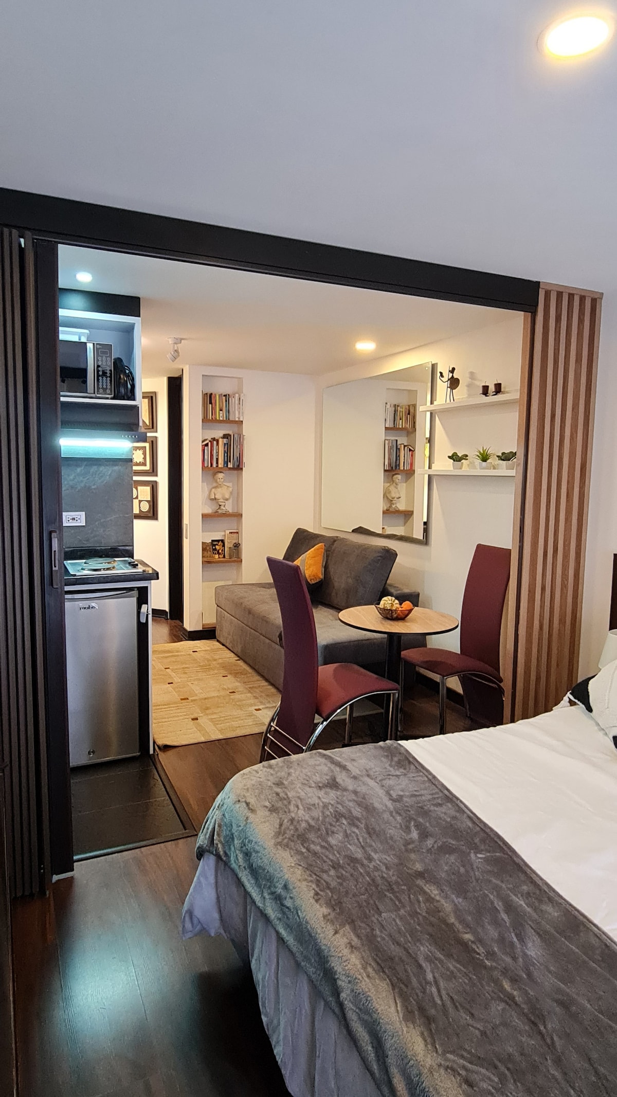 Moderno apartamento para 2 en excelente ubicación – Pet friendly Disfruta de Bogotá desde este acogedor y moderno apartamento, ideal para 2 personas. Totalmente equipado, con WiFi rápido, cocina funcional y todos los servicios que necesitas. Ubicado en una zona estratégica, cerca de restaurantes, transporte y lugares turísticos. ¡Tu mascota también es bienvenida!