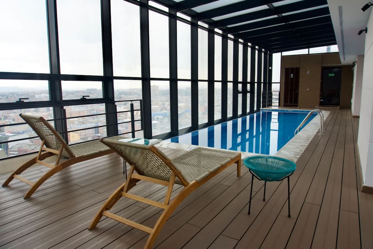 Pihenj ezen a csendes és elegáns helyen. A bogotái Zona Rosa közelében található, így közel van az éttermekhez, a bárokhoz és a város legjobb éjszakai életéhez, de elég messze ahhoz, hogy jól kipihenhesd magad a város egy másik részét is élvezni kívánók számára kialakított egyik legjobb környéken. Egyes területeken további költséget számít fel közvetlenül az épület. • Medence: 50 000 dollár 2 óra •Jacuzzi: 50 000 dollár/óra •Szauna: 50 000 dollár 1 óra