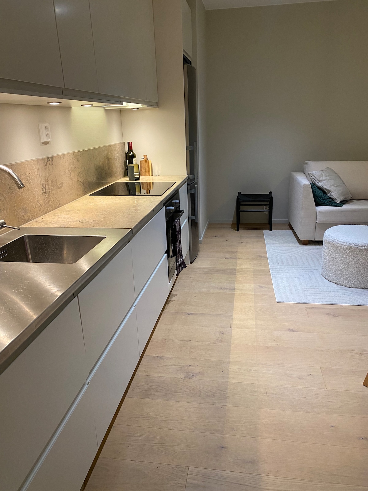 Nybyggd 90 kvm lägehet inredd för socialt umgänge