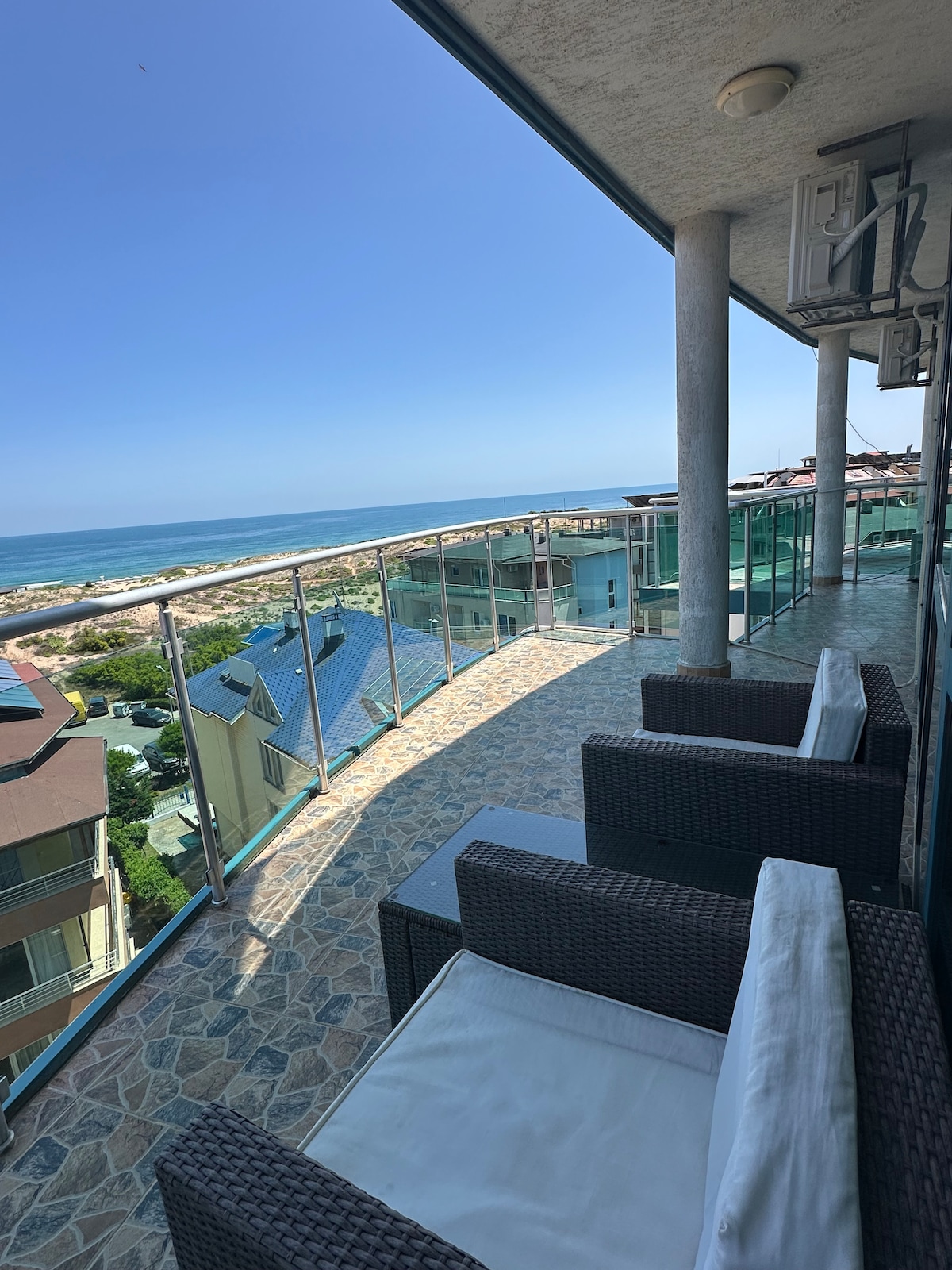 Ez a tágas, kétszintes apartman (250 m² + 150 m² terasz) az egyik legnagyobb kiadó hely Primorszkóban, az 5 csillagos Primorsko del Sol komplexumban, közvetlenül a tengerparton. A 4 saját hálószobával, amelyek mindegyike saját fürdőszobával és terasszal rendelkezik, tökéletes választás családok vagy együtt utazó csoportok számára. A lakás nagy nappalival rendelkezik, amely panorámás kilátást nyújt a tengerre, jól felszerelt konyhával, légkondicionálóval minden szobában. A vendégek a komplexum medencéjét is használhatják.