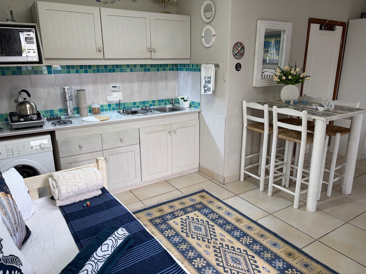 A helyem a festői Vleesbaai faluban található, körülbelül 20 percre a Mossel-öböltől és egy órányira a George repülőtértől. A házikó a sziklák felett fekszik, ahonnan zavartalan kilátás nyílik az egész partra és az öbölre. Jó pároknak és egyéni kalandozóknak. A lakás önálló, saját zárható ajtókkal rendelkezik. Fram the house there is a 300m footpath to the beach. Van egy élelmiszerbolt a városban, és egy kávézó körülbelül 2 km-re innen. Az afrikaans és az angol nyelvet itt beszélik.