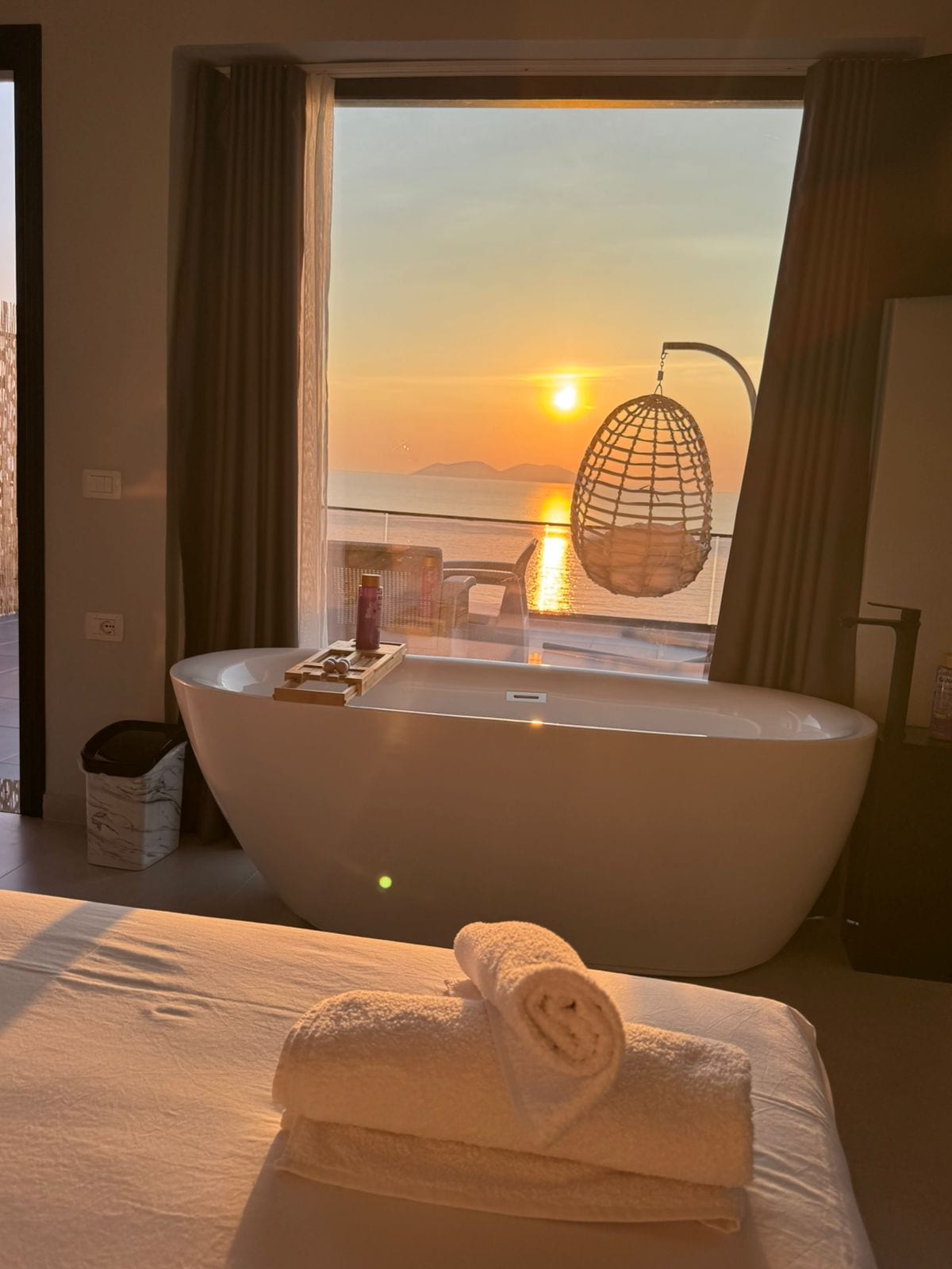Experience comfort and breathtaking sea views at Aloha Suites .This elegant room is perfect for a relaxing seaside getaway, featuring a private balcony with magical panoramic views of the sea and peaceful surroundings. The room includes a comfortable double bed, bathtub modern design, natural light, air conditioning, free Wi-Fi, flat-screen TV, minibar, and a private bathroom. Perfect for couples looking for comfort, privacy, and unforgettable sunsets by the sea.