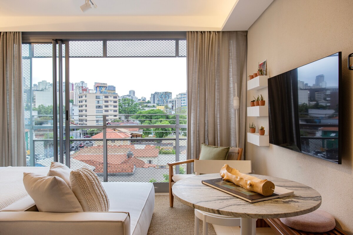 Pihenj São Paulo legjobb helyén, Jardins és Pinheiros között. Ez az újonnan megnyitott stúdió 5 perces sétára található az Oscar Freire metróállomástól, egy új épületben, amely minden infrastruktúrával rendelkezik a csendes és kényelmes tartózkodás érdekében. Egy kézműves kenyérrel teli pékség tetején található, az utca túloldalán pedig egy szupermarket található. Az épületben van coworking- és közösségi tér, mosókonyha, edzőterem, tetőtéri medence és egy 24 órás portaszolgálat. Wi-Fi 450 Mbps.